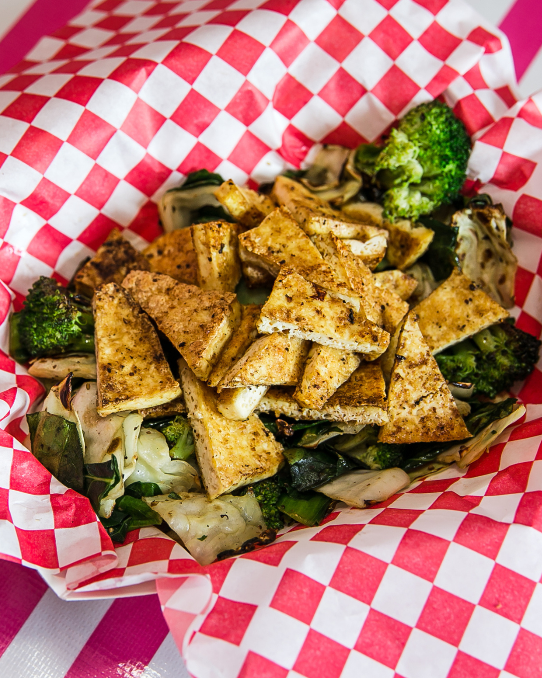 choice of bbq pork, smoked chicken, or tofu on grilled seasonal veggies